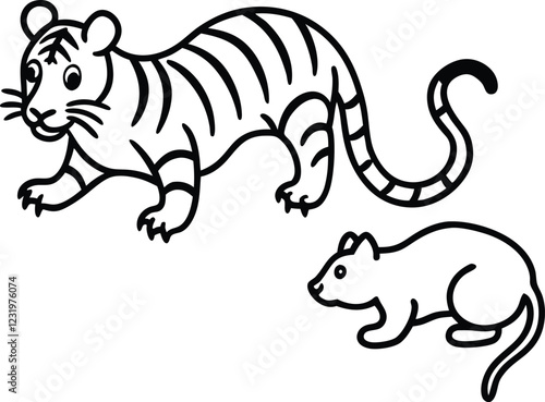 Obraz premium A Tiger and Mouse coloring page useful as coloring book for kids illustration