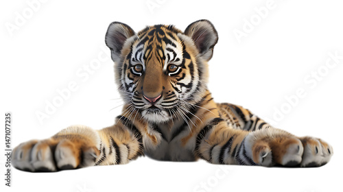 Fototapeta premium A tiger cub with a transparent background.