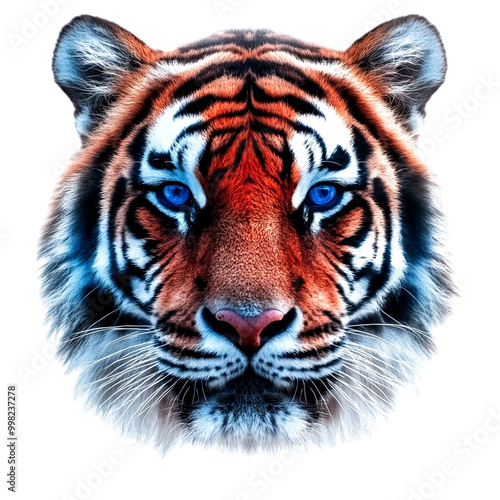 © QasimVisuals , Fototapeta premium A tiger face with red and blue stripes