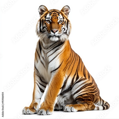 © TheosArtTavern, Naklejka premium A tiger is sitting on a white background