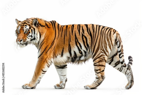 Fototapeta premium A tiger is walking on a white background