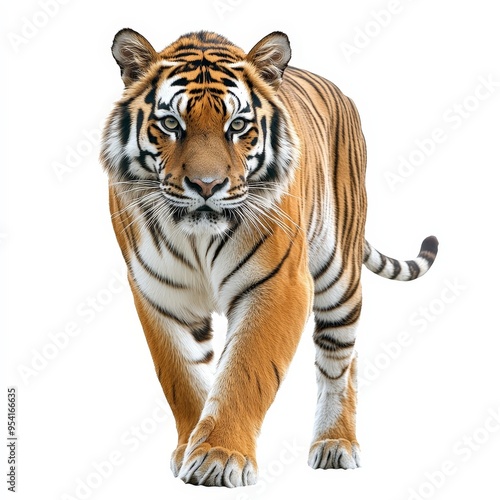 © TheosArtTavern, Fototapeta premium A tiger is walking on a white background