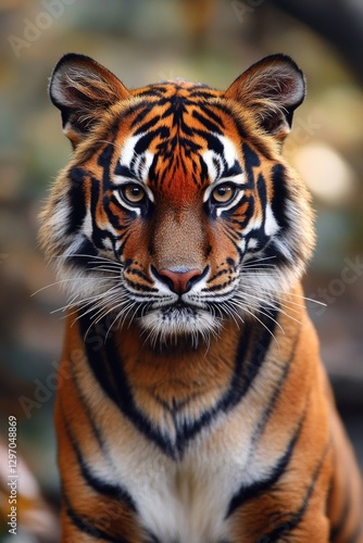 © Ева Поликарпова, Fototapeta premium A tiger looks directly into the camera lens