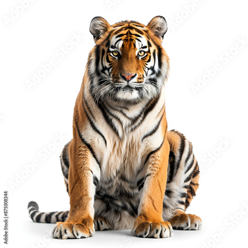 Fototapeta premium A tiger sitting gracefully on a white background.