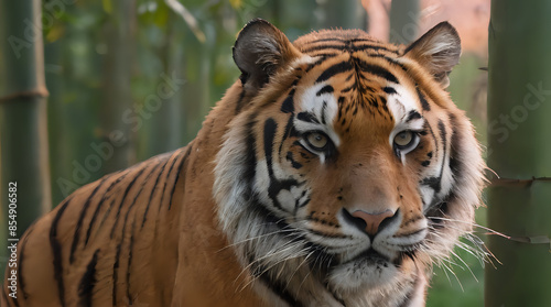 © Majibar, Fototapeta premium a tiger that is standing in the grass by a fence