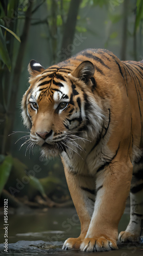 © Majibar, Obraz premium a tiger walking across a puddle of water