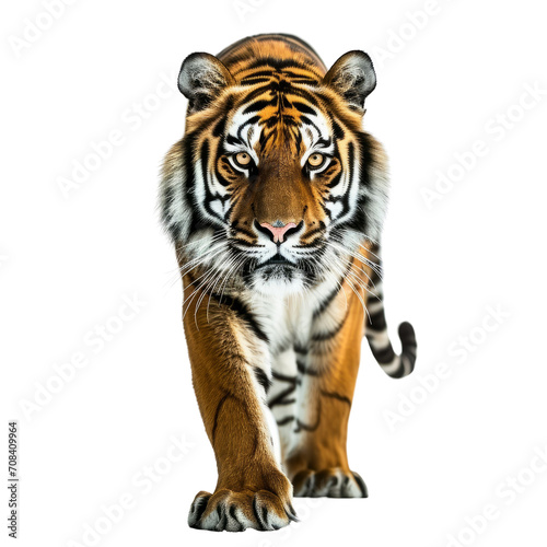 © Jan, Naklejka premium A tiger with striking stripes approaching the camera.