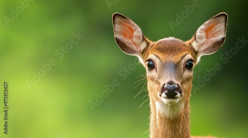 © Viktor, Fototapeta premium A tight shot of a deer's head with indistinct trees in the background