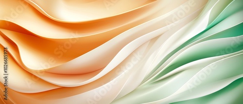 © Albert, Obraz premium A tight shot of a multicolored backdrop featuring green, orange, and white hues, with a wavy pattern on its left side