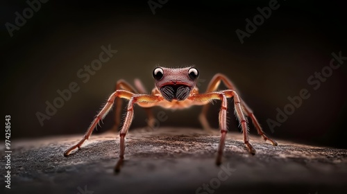 Naklejka premium A tight shot of a spider atop a weathered wood plank against a faintly...