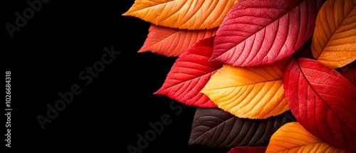 Obraz premium A tight shot of vibrant leaves in red, orange, yellow, and green hues against a black backdrop
