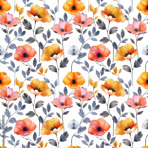 © Seregor, Fototapeta premium A tiled pattern of colorful aquarelle flowers