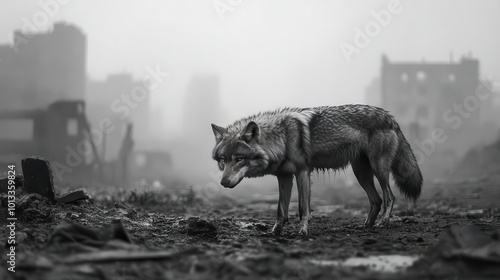 © Brera Design, Fototapeta premium A tilted angle view of a lone wolf navigating a desolate