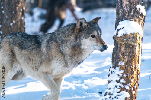 Obraz premium A Timber Wolf in a Snowy Forest