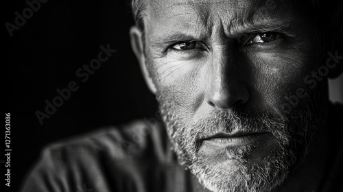 Obraz premium a timeless black-and-white portrait of a man with a serious expression.