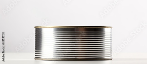 Obraz premium A tin can containing preserved food is closed and placed on a white background ready for a copy space image