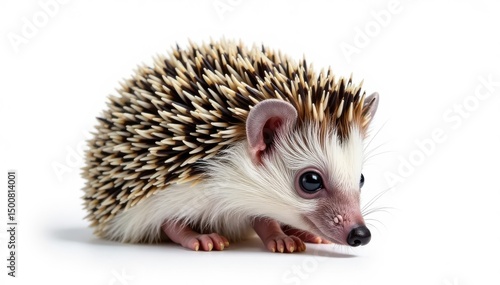 © Ibox, Fototapeta premium A tiny hedgehog, curled into a ball, isolated on pure white background , hedgehog portrait, fauna photography, animal photography