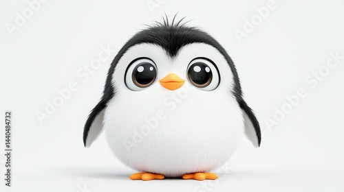 © Rinowz, Fototapeta premium A tiny kawaii penguin with round eyes and stubby wings, centered on a clean white background. Innocent and cheerful