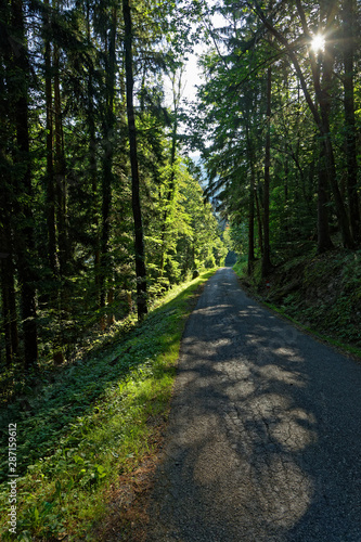 Fototapeta premium A tiny winding road of Belledonne goes thru the forest