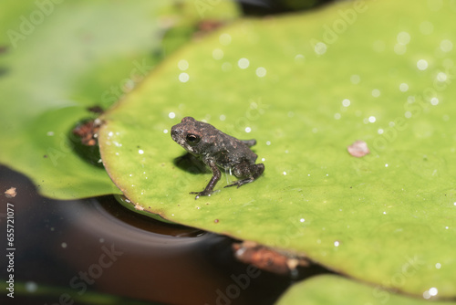 Obraz premium A toad rests on a lily pad during a Texas summer.