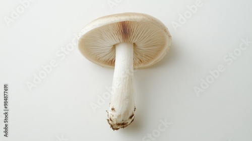 © วรรณภา มะโนศรี, Fototapeta premium A top-down shot of a single, pristine mushroom with a perfect cap and stem, set against a white surface to highlight its natural elegance and simplicity.