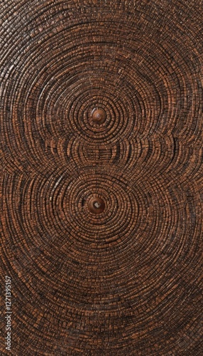 © Aliona, Naklejka premium A top-down view of a beautifully textured wooden surface with concentric circles formed by small wooden pieces, ideal for decor, design, or art projects focusing on nature.