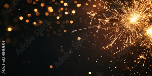 Obraz premium A top down view presents a festive background featuring a border of shimmering gold sparklers against a black background, offering plenty of space for text.