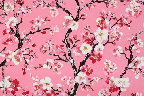 © Halina Berah, Fototapeta premium A top view of a flower blossom pattern against a pink background