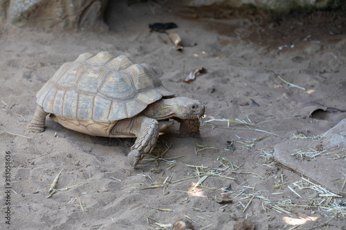Obraz premium A tortoise, turtle eating grass