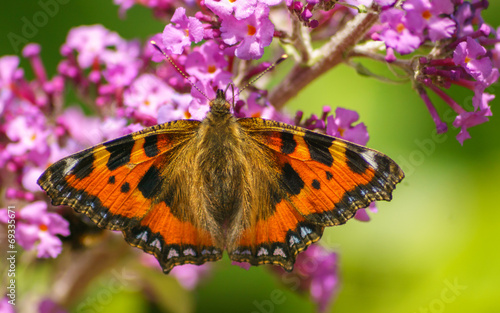 © akilrollerowan, Obraz premium A Tortoiseshell Butterfly feeding on a purple Buddleja