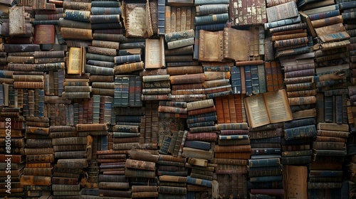 © Liel, Fototapeta premium A tower of books piled high on top of another stack of books