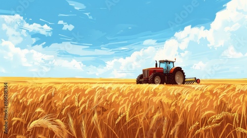 © Various Backgrounds, Fototapeta premium A tractor working in a field of wheat