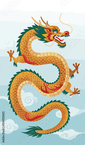 © vector Art, Obraz premium A traditional Asian dragon artwork featuring a fierce, coiled dragon with a golden and black color scheme.