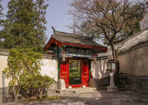 © Daniel H Chui, Obraz premium A traditional Chinese doorway to a side yard in Beihai, Beijing.