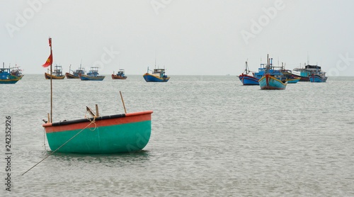 Naklejka premium A traditional fishing boat in Mui Ne Fishing Village, Binh Thuan Province,...