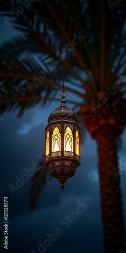 © SwathiFX, Fototapeta premium A traditional Middle Eastern lantern, typically made of metal and glass, often decorated with intricate designs