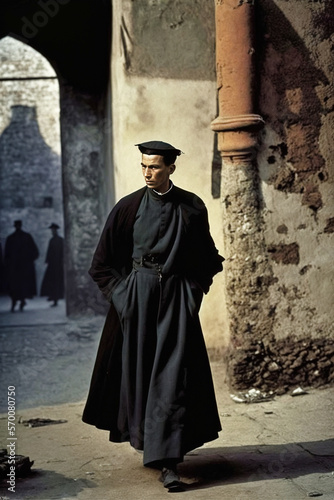 © Uolir, Naklejka premium A traditionalist old-school Catholic priest wearing a cassock - generative ai