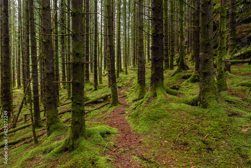 Fototapeta premium A Trail in a Green Mossy Pine Forest