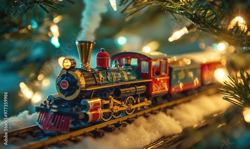 © TheoTheWizard, Obraz premium A train is on a track with lights around it