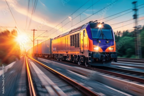 Naklejka premium A train manages traffic within supply chains, efficiently transporting goods...