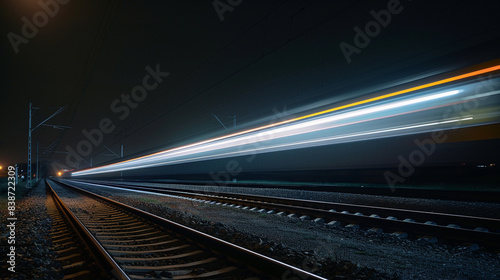 Fototapeta premium A train moving at night, with light trail.
