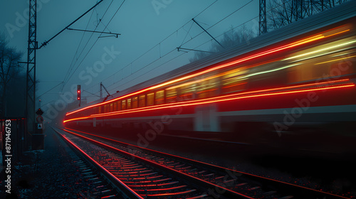 © Akharadat, Fototapeta premium a train moving at night, with light trail