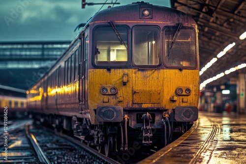Fototapeta premium A train parked at a busy train station