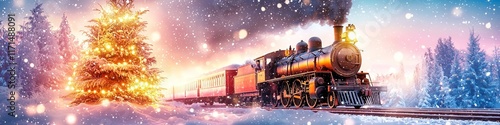 Fototapeta premium A train speeding through a winter landscape.