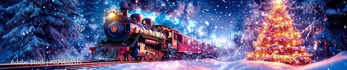 Fototapeta premium A train speeding through a winter landscape.