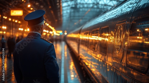 © Alienmarsh, Naklejka premium A Train Station in the Evening