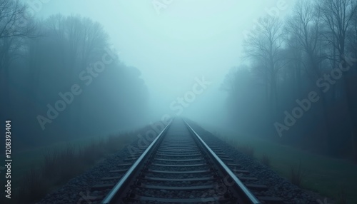 © VisualPro, Fototapeta premium A train track vanishing into the fog. Motherless illustration, HD Backgrounds
