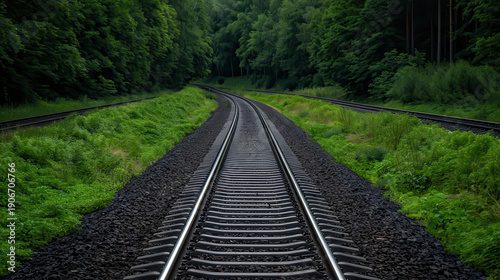 © AH TAR STOCK, Fototapeta premium A train track with a train in the distance