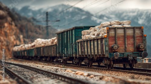 © PACHARA, Fototapeta premium A train with a green car is on the tracks
