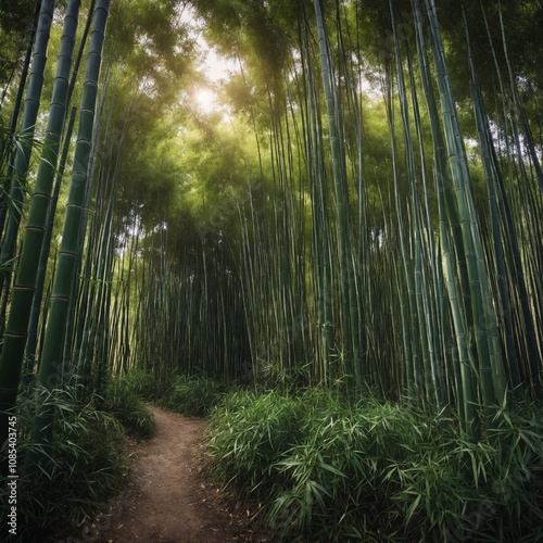Naklejka premium A tranquil bamboo grove swaying gently in the breeze.